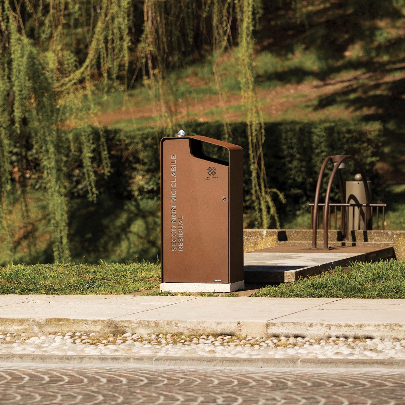 Der Abfallbehälter Soave wird aus pulverbeschichtetem Stahl gefertigt und verfügt über einen Betonsockel. Soave ist wahlweise mit 50 Liter oder mit 100 Liter Fassungsvermögen erhältlich. Der Abfalleimer kann mit und ohne Ascher geliefert werden.