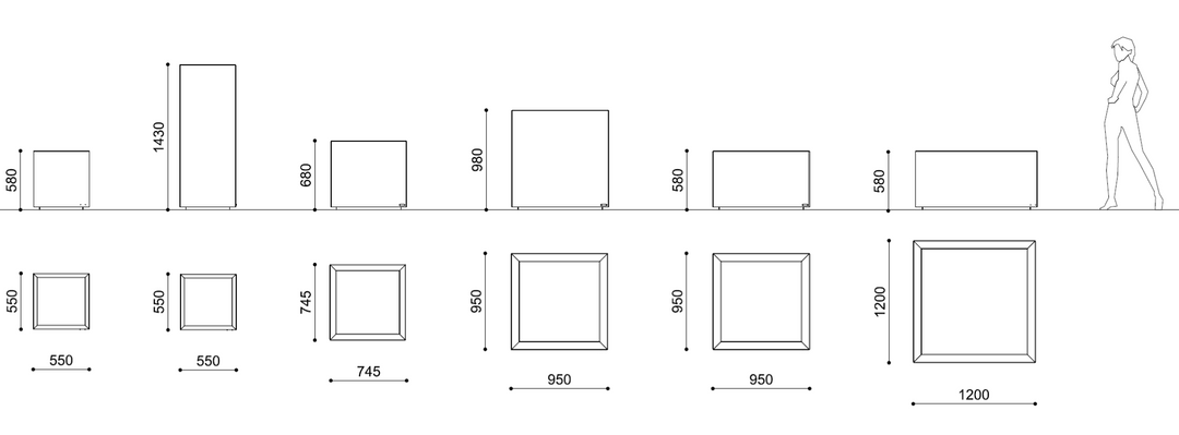 Dahlia gibt es in verschiedenen Größen. Alle Blumentröge der Serie sind quadratisch und aus Stahlblech gefertigt - wahlweise pulverbeschichtet, in Cortenstahl oder in Edelstahl ausgeführt. Eine Edelstahlplatte, die personalisiert und mit einem Logo oder Schriftzug versehen werden kann, ist optional und gegen Aufpreis erhältlich.