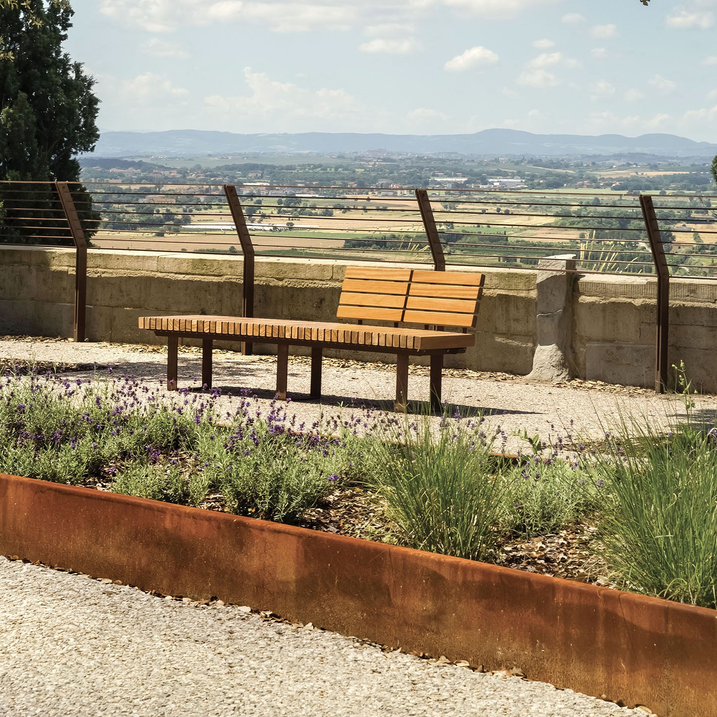 Die Grandifioriere Serie umfasst Beetbegrenzungen aus Corten Stahlblech in drei unterschiedlichen Höhen, die mit Sitzelementen aus wärmebehandelten Pinienholz oder Hartholz kombiniert werden können. Auf diese Weise können individuelle Blumenbeete mit integrierten Sitzlandschaften geschaffen werden. Der freien Gestaltung sind keine Grenzen gesetzt!