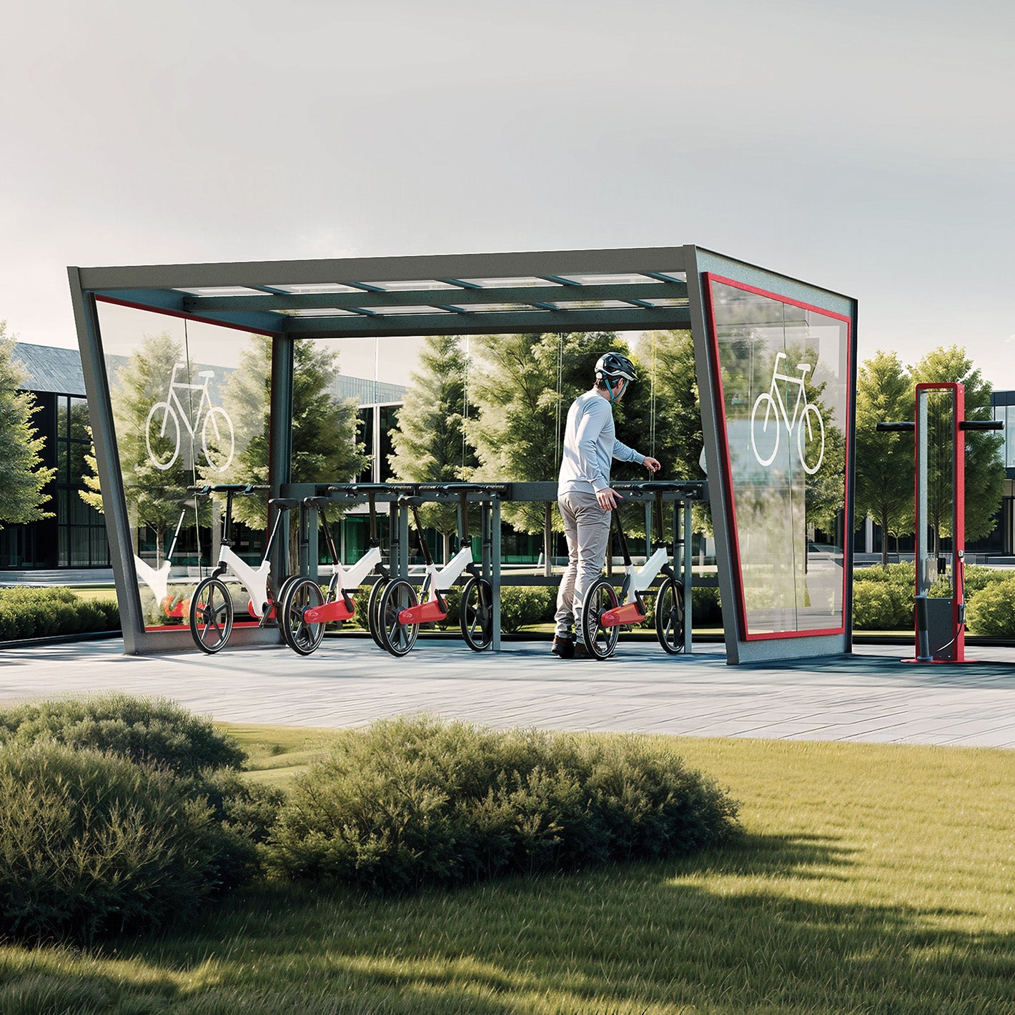 Die Überdachung kann auf Wunsch und gegen Aufpreis mit Lademöglichkeit für E-Bikes und/oder LED-Beleuchtung geliefert werden.
