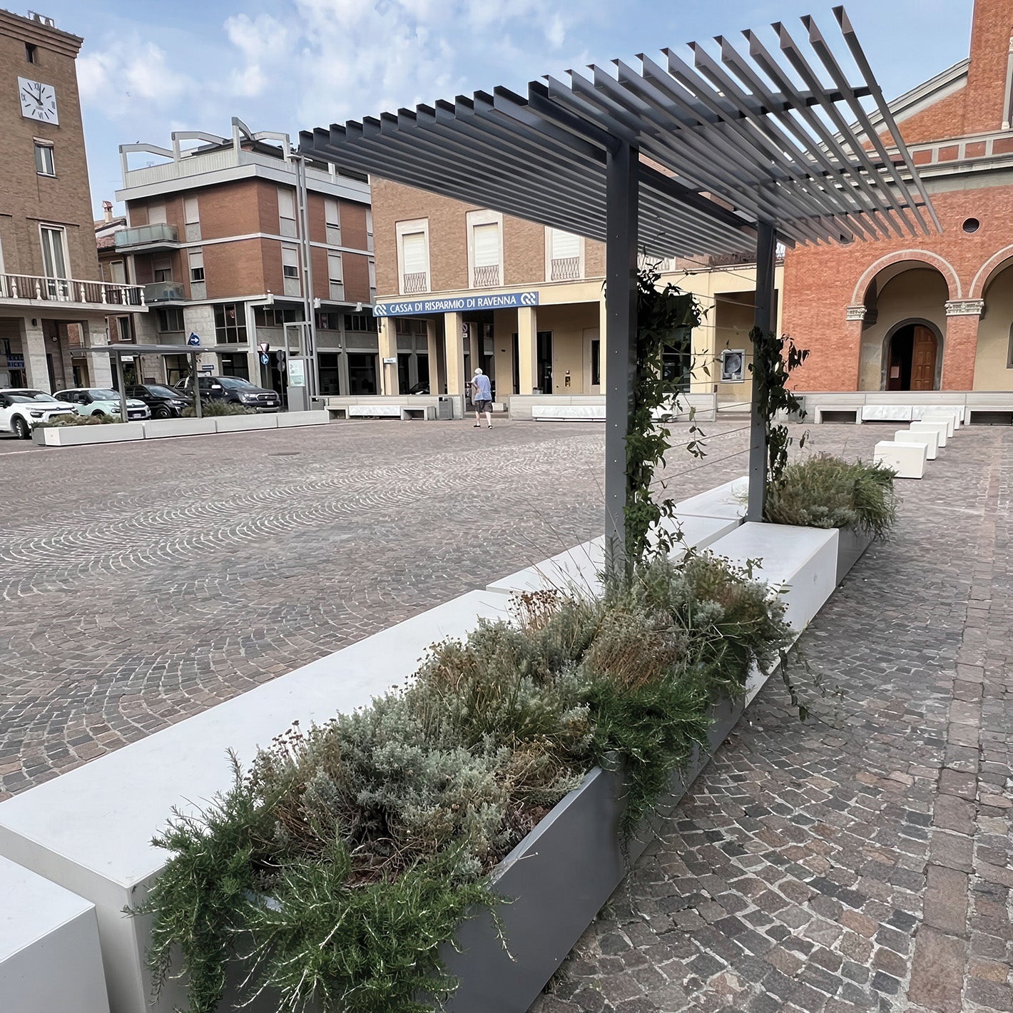 Mit der Alterego Serie können ganze Landschaften im öffentlichen Raum geschaffen werden. Sie umfasst Parkbänke, Tische, Liegen, Blumentröge sowie Überdachungen, die individuell zusammengestellt werden können.