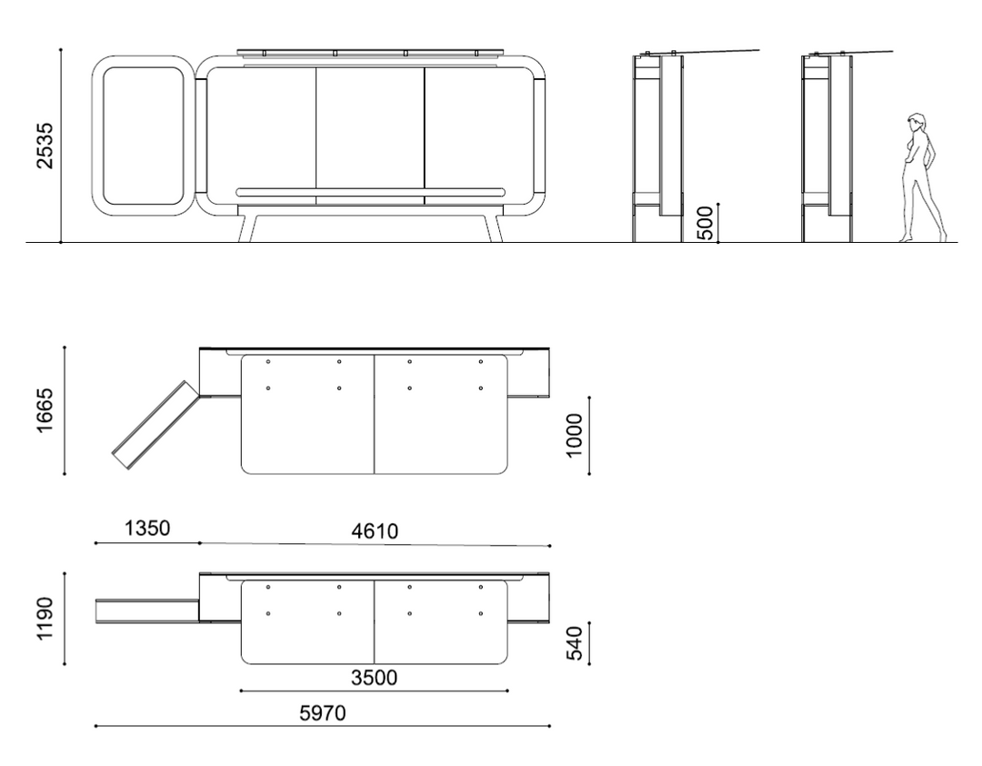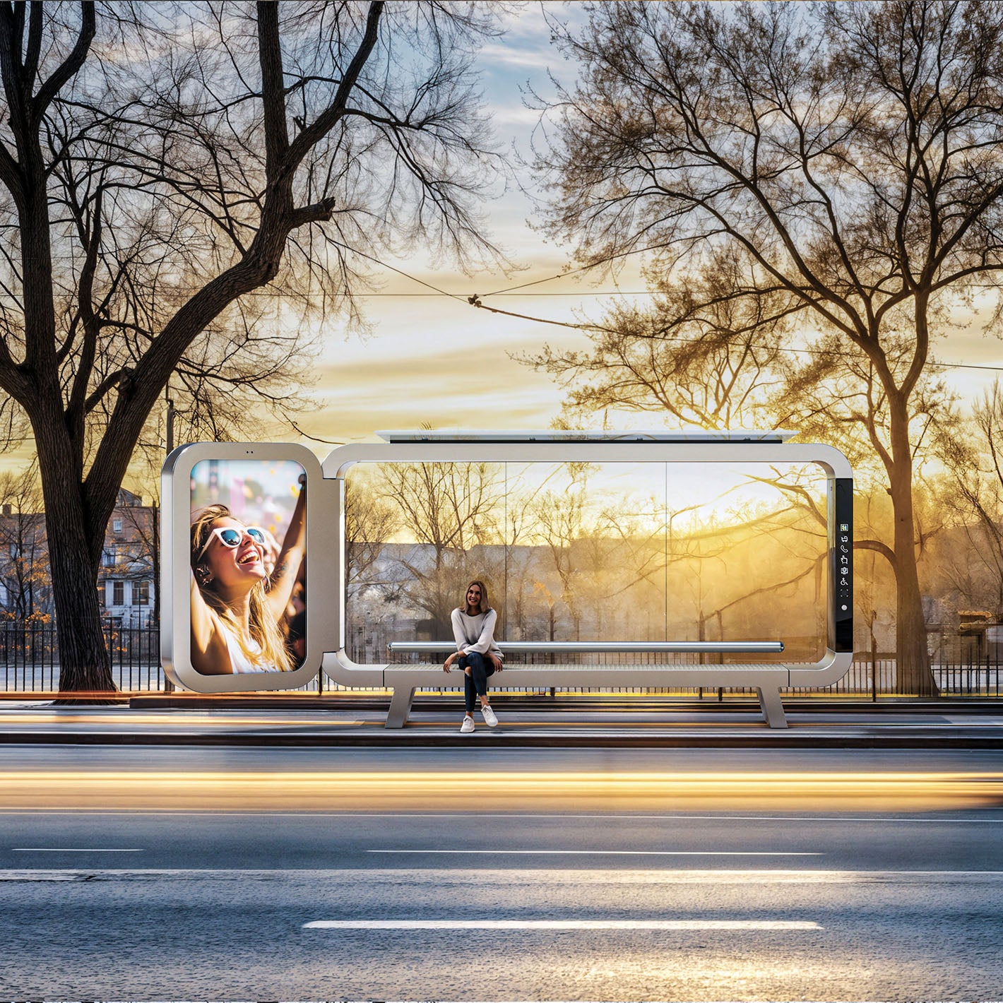 Chassis ist ein Buswartehaus mit einem neuen und attraktiven Design um die Wartezeit zu verkürzen. Das Wartehaus ist mit zwei unterschiedlichen Tiefen erhältlich und wird wahlweise in eloxiertem Aluminium (gold) oder in Edelstahl (silber) gefertigt. Chassis kann als besonderer Eyecatcher mit einem Schaukasten und LED Beleuchtung ausgestattet werden.