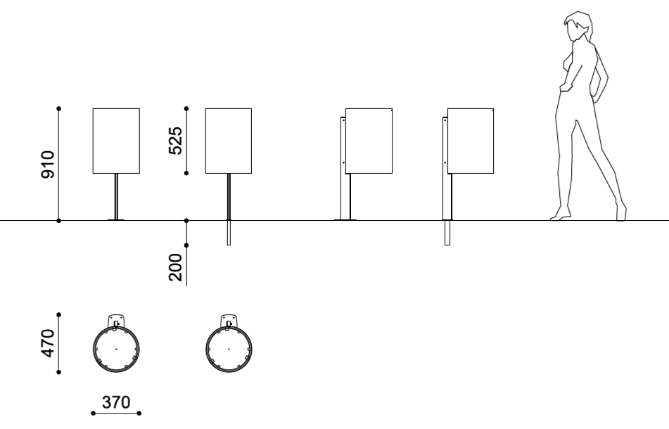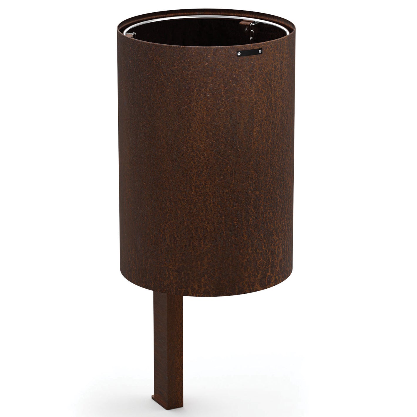 Der Abfallbehälter Corte wird wahlweise in pulverbeschichtetem Stahl oder in Corten Stahl ausgeführt. Er wiegt 20 kg und fasst 55 Liter. Der Abfalleimer kann mit Bodenplatte zum Aufschrauben oder zum Einbetonieren geliefert werden.