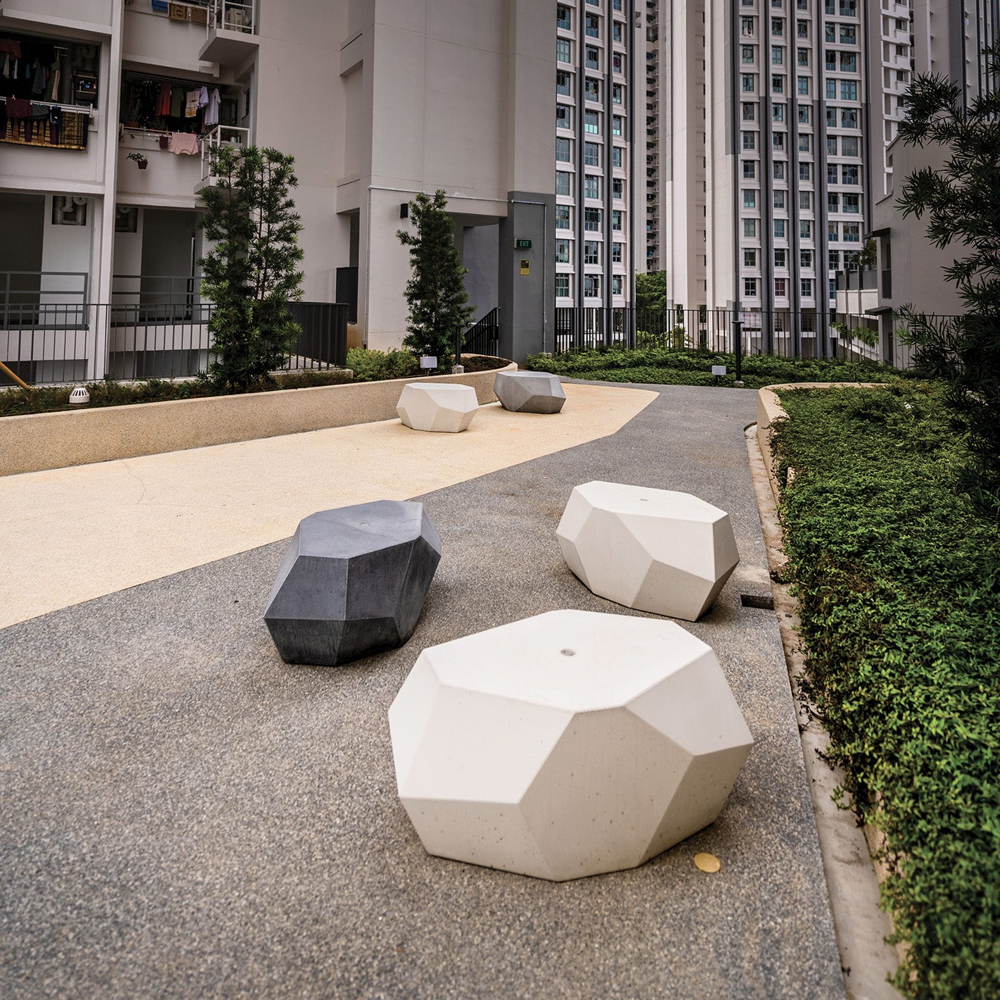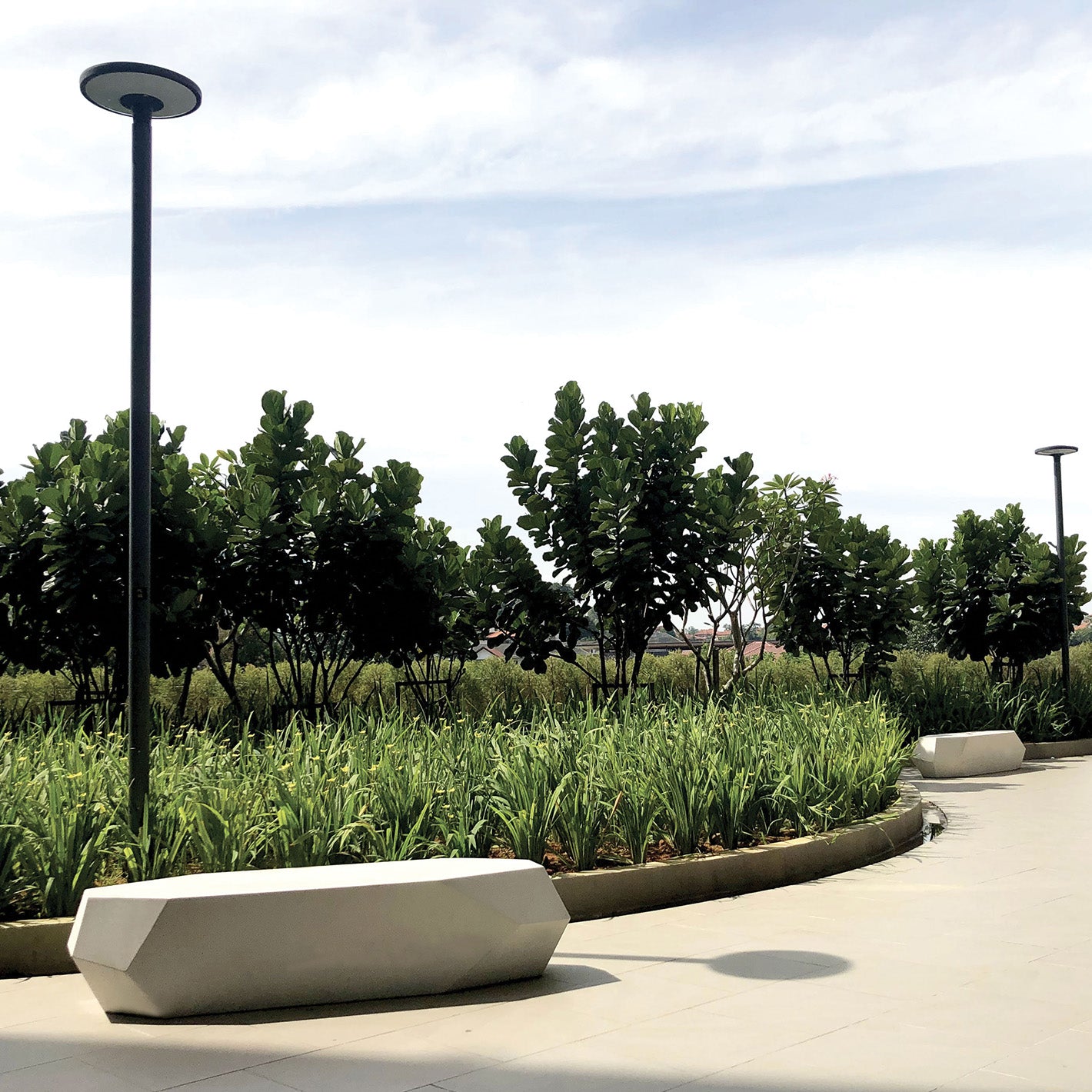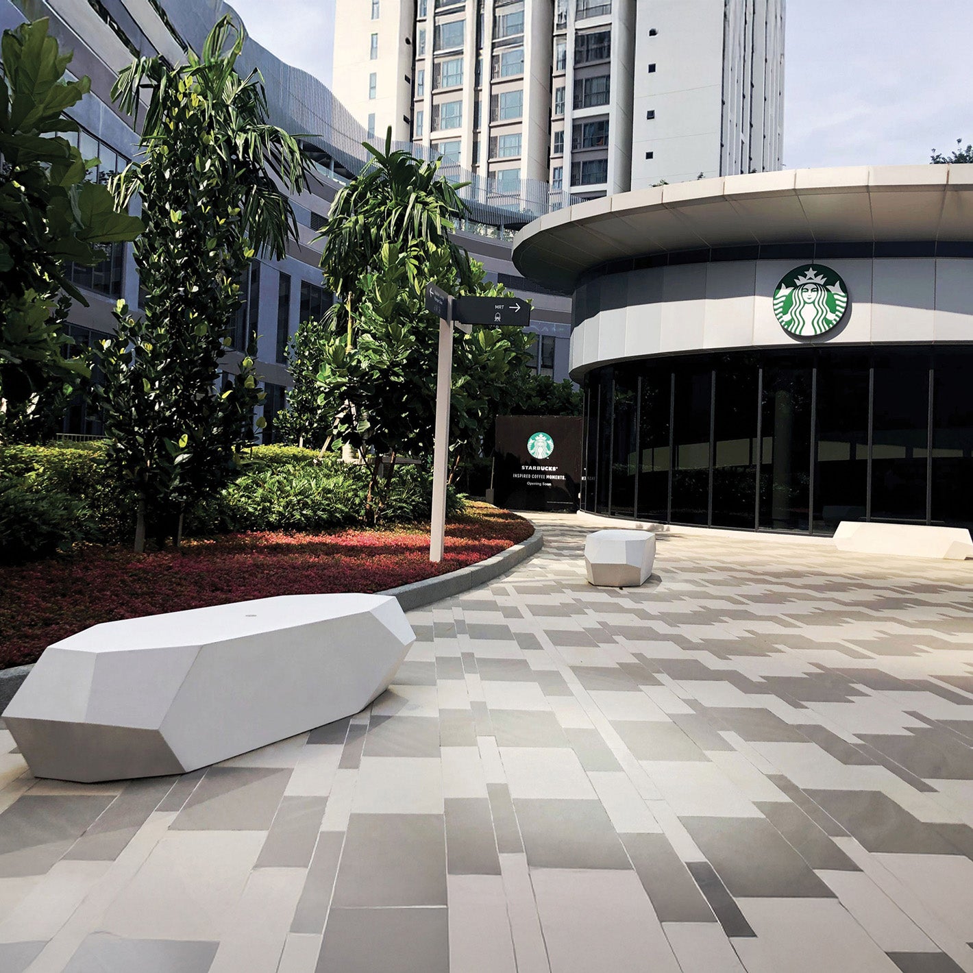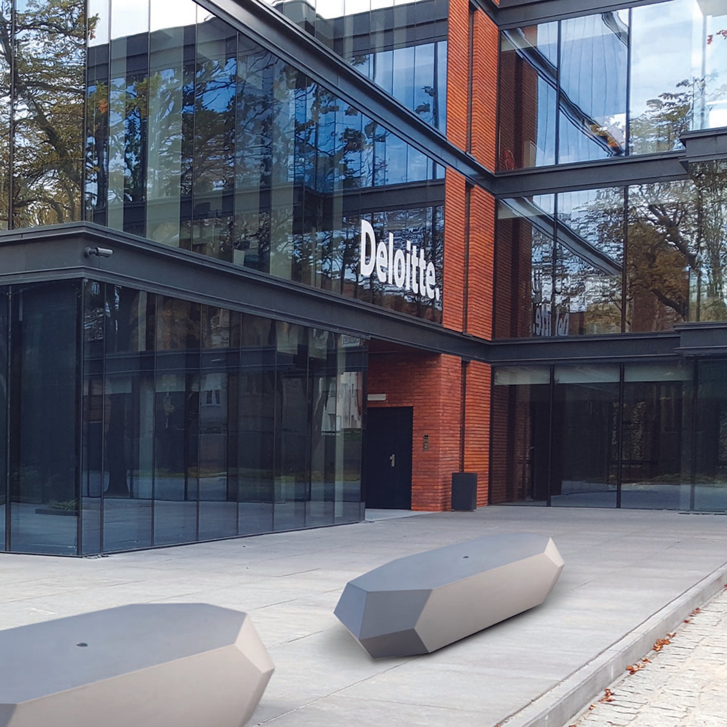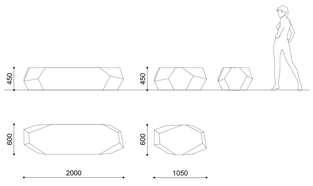 Die monolithischen Hoba Sitzelemente sind in zwei Größen erhältlich. Sie werden aus HPC, High Performance Concrete, Hochleistungsbeton für dünnwandige Bauteile mit feinen, matten Oberflächen gefertigt. Die Sitzbänke sind wahlweise in den Farben weiß, grau, dunkelgrau, grün und gelb lieferbar.