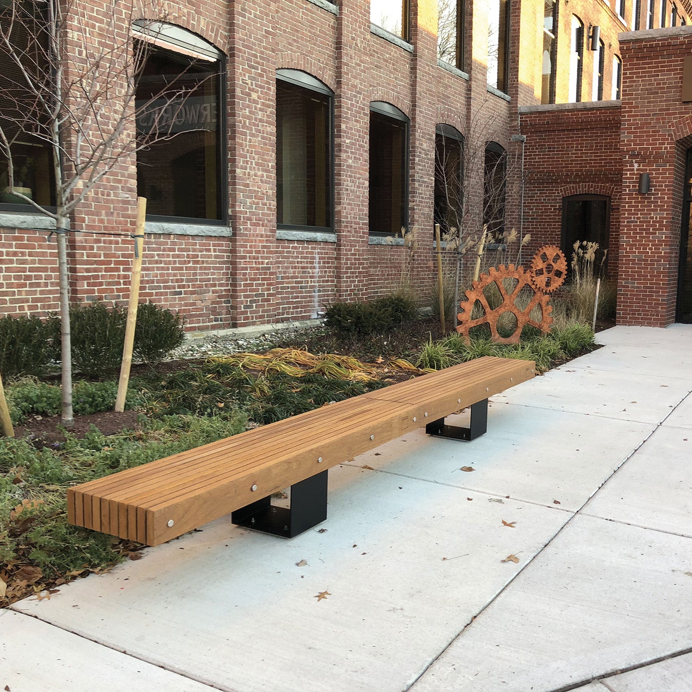 Die Parkbank Ideas T ist in zwei unterschiedlichen Längen erhältlich. Die Stahlteile können auf Wunsch in pulverbeschichteten Stahl oder in Corten Stahl gefertigt werden. Die Bankauflage wird in Hartholz oder in wärmebehandelten Pinienholz ausgeführt.
