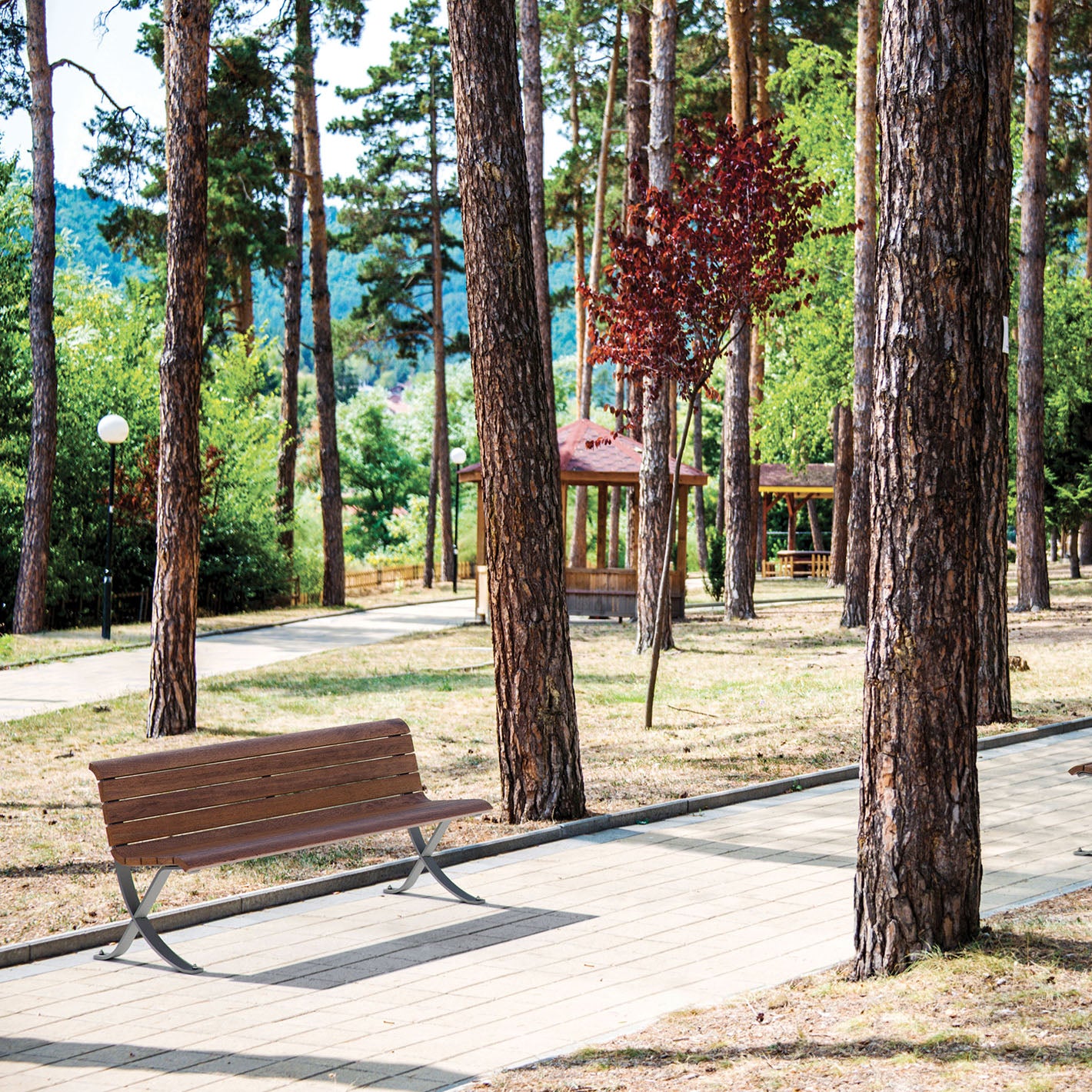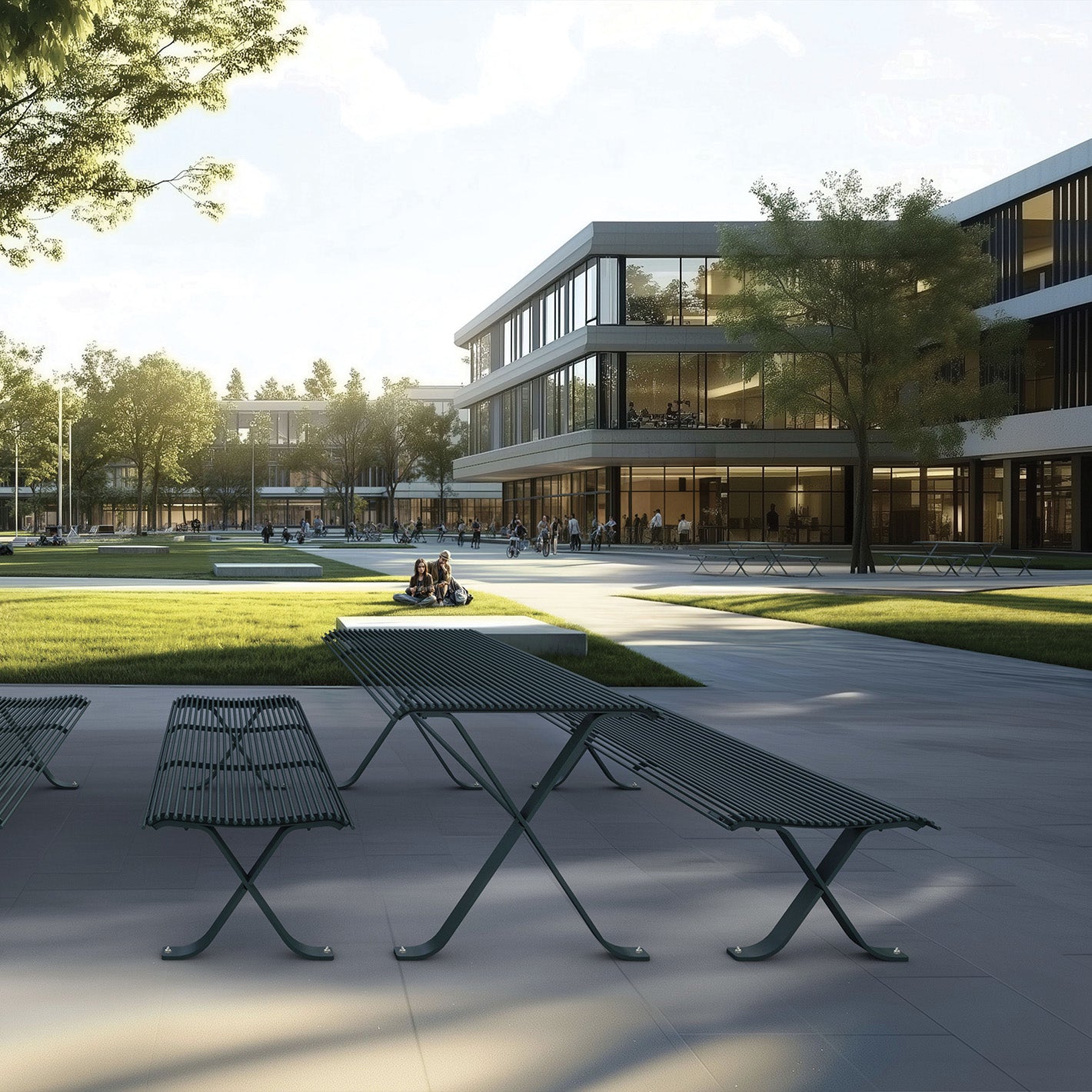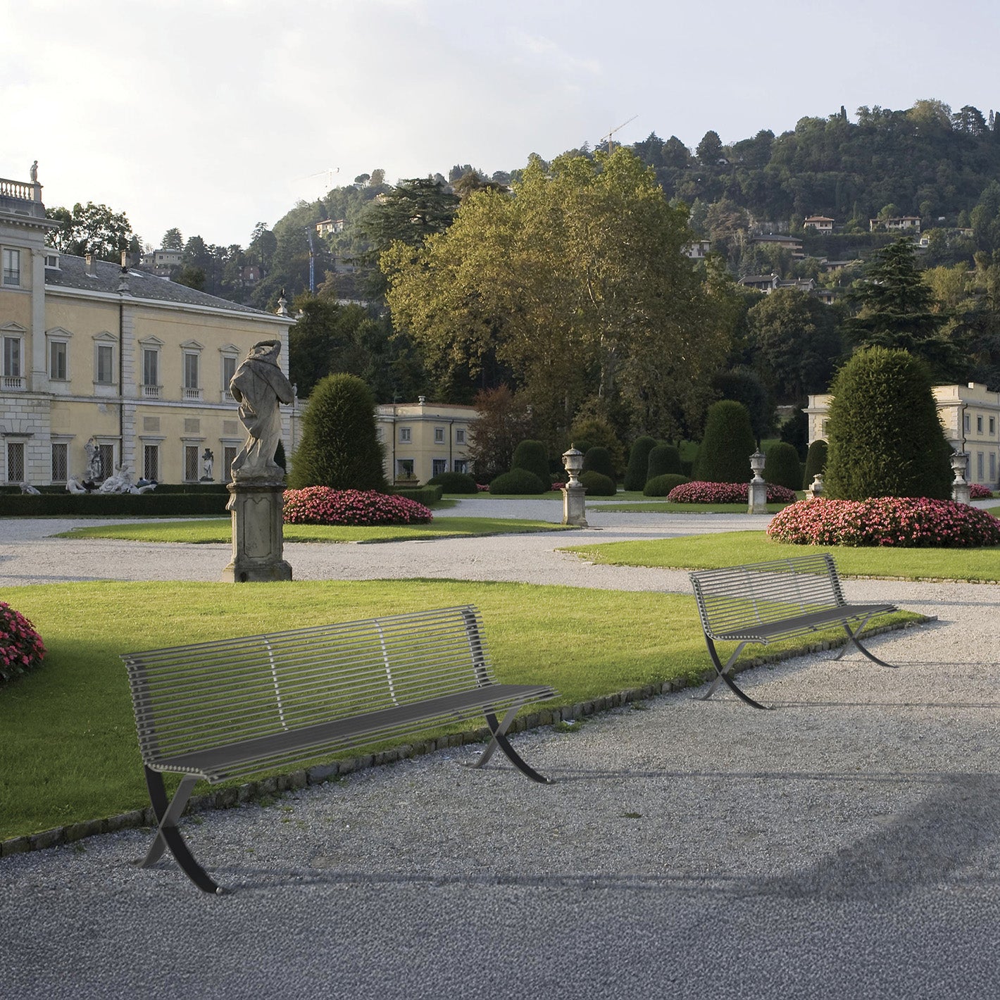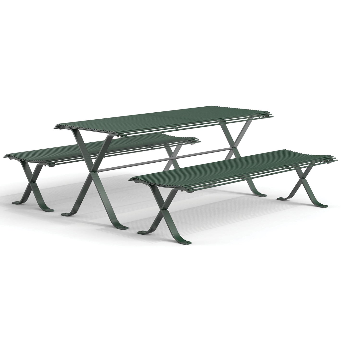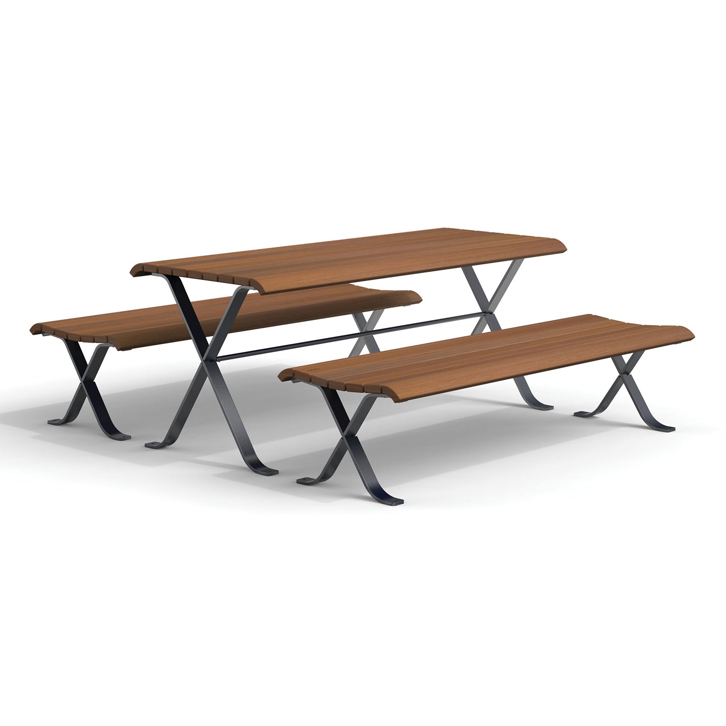 Die Miss Sitzgruppe wird wahlweise entweder komplett in pulverbeschichtetem Stahl gefertigt oder mit Bankfüßen aus pulverbeschichtetem Stahl und Hartholzbelattung ausgeführt. Die zugehörigen Bänke sind ohne und mit Rückenlehne erhältlich. Statt den Sitzbänken kann die Sitzgruppe auch mit Stühlen ausgestattet werden.
