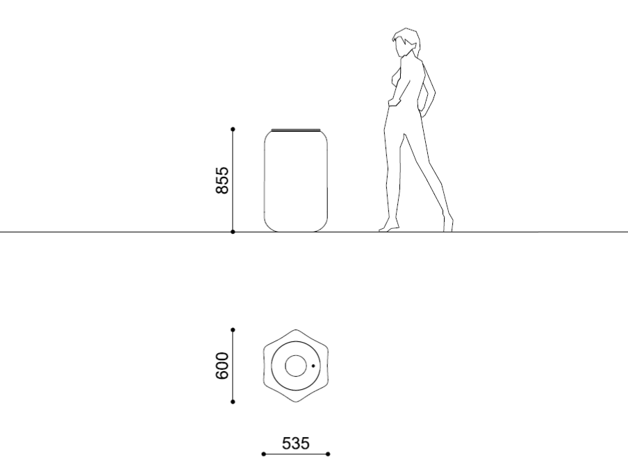 Der Edelstahl Deckel ist mit einem Schnappschloss ausgestattet und verfügt über eine zentrale Einwurföffnung. Der Abfallbehälter ist zudem mit einem Sackhalterring ausgestattet.