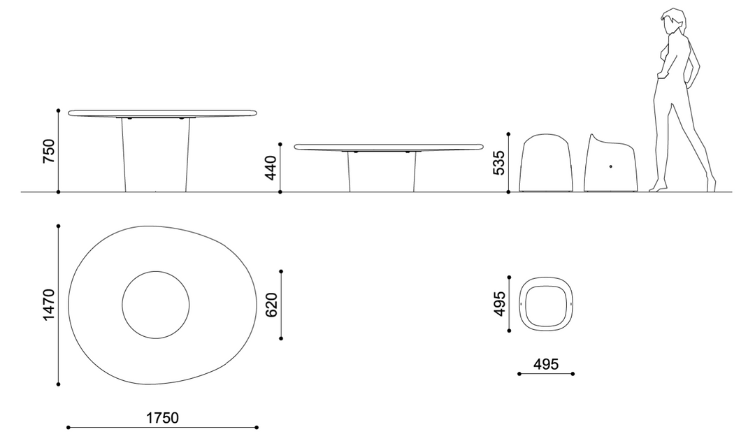 Gewicht: 145 kg (Sitzhocker), 345 kg (Tisch Höhe 440 mm) oder 460 kg (Tisch Höhe 750 mm)