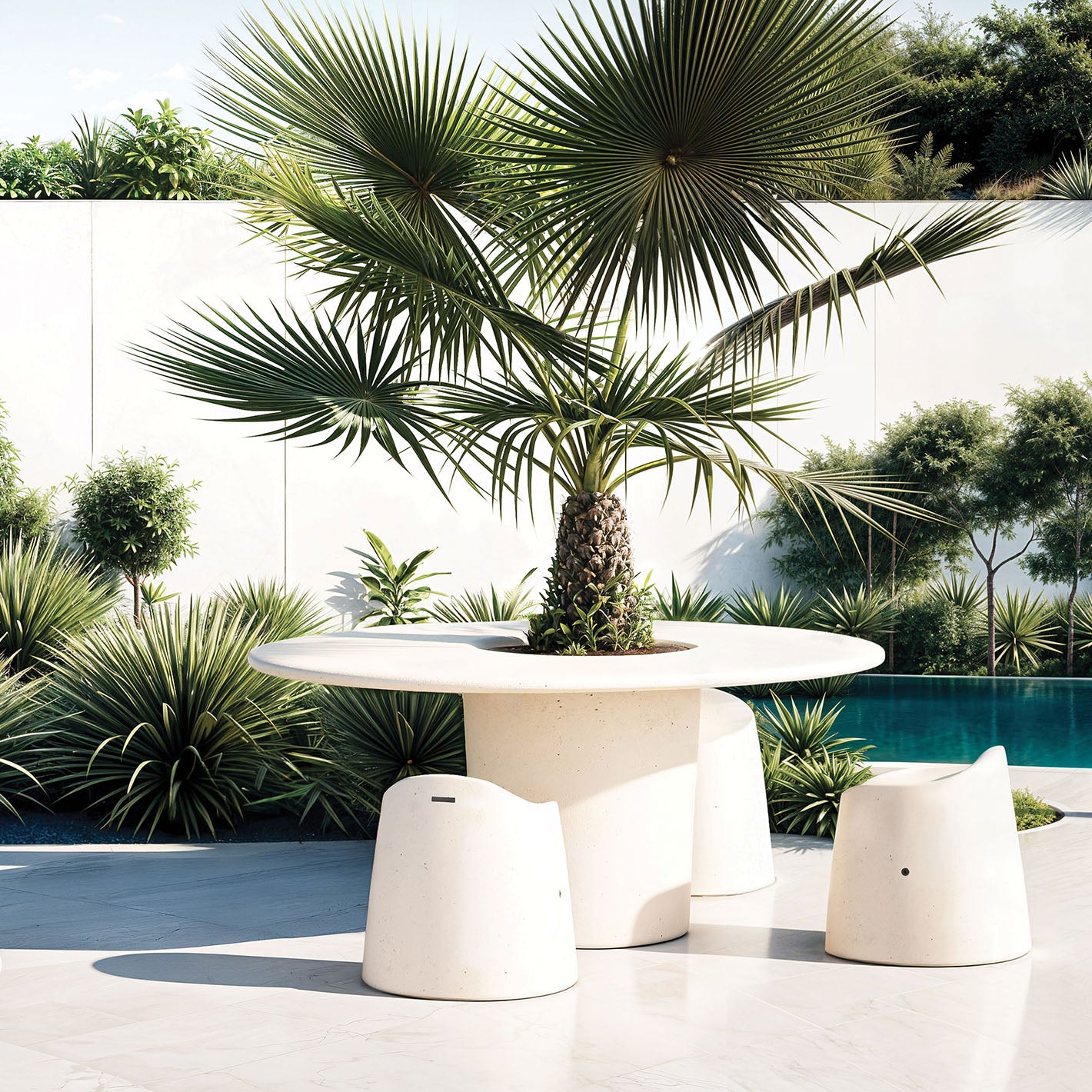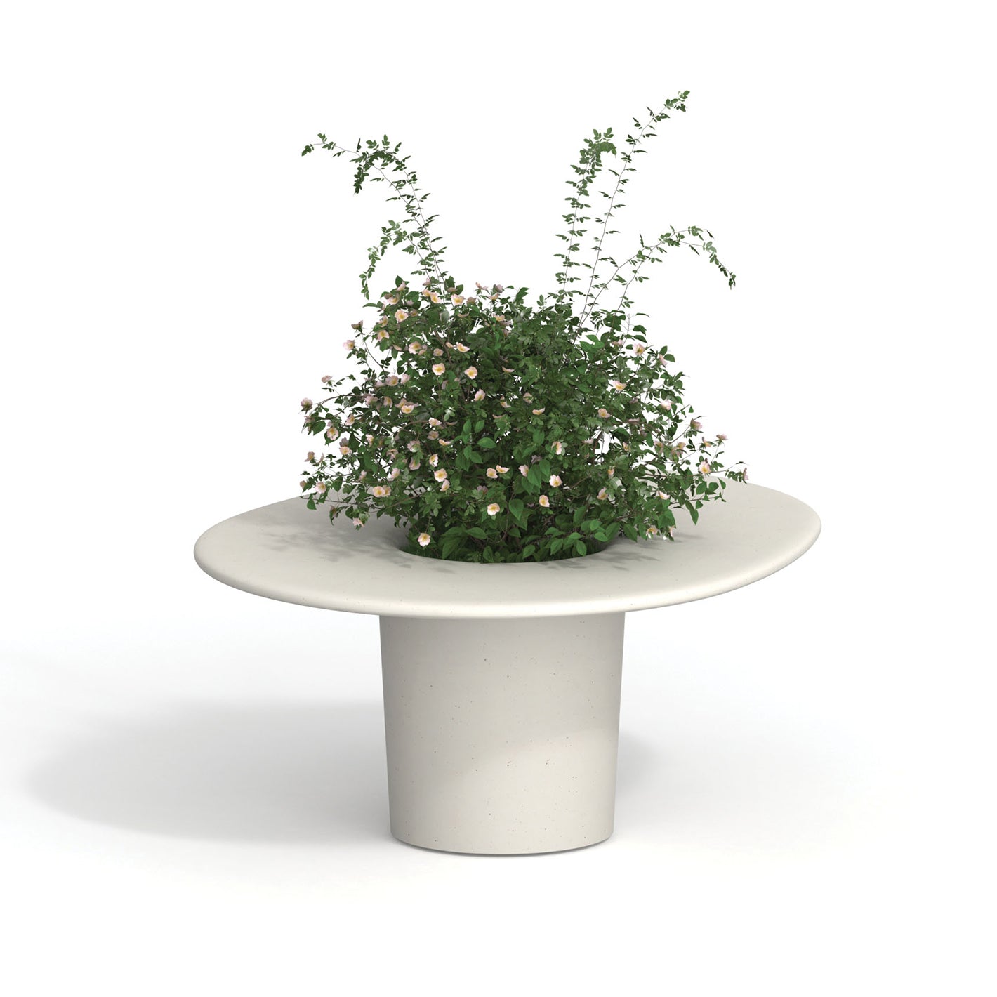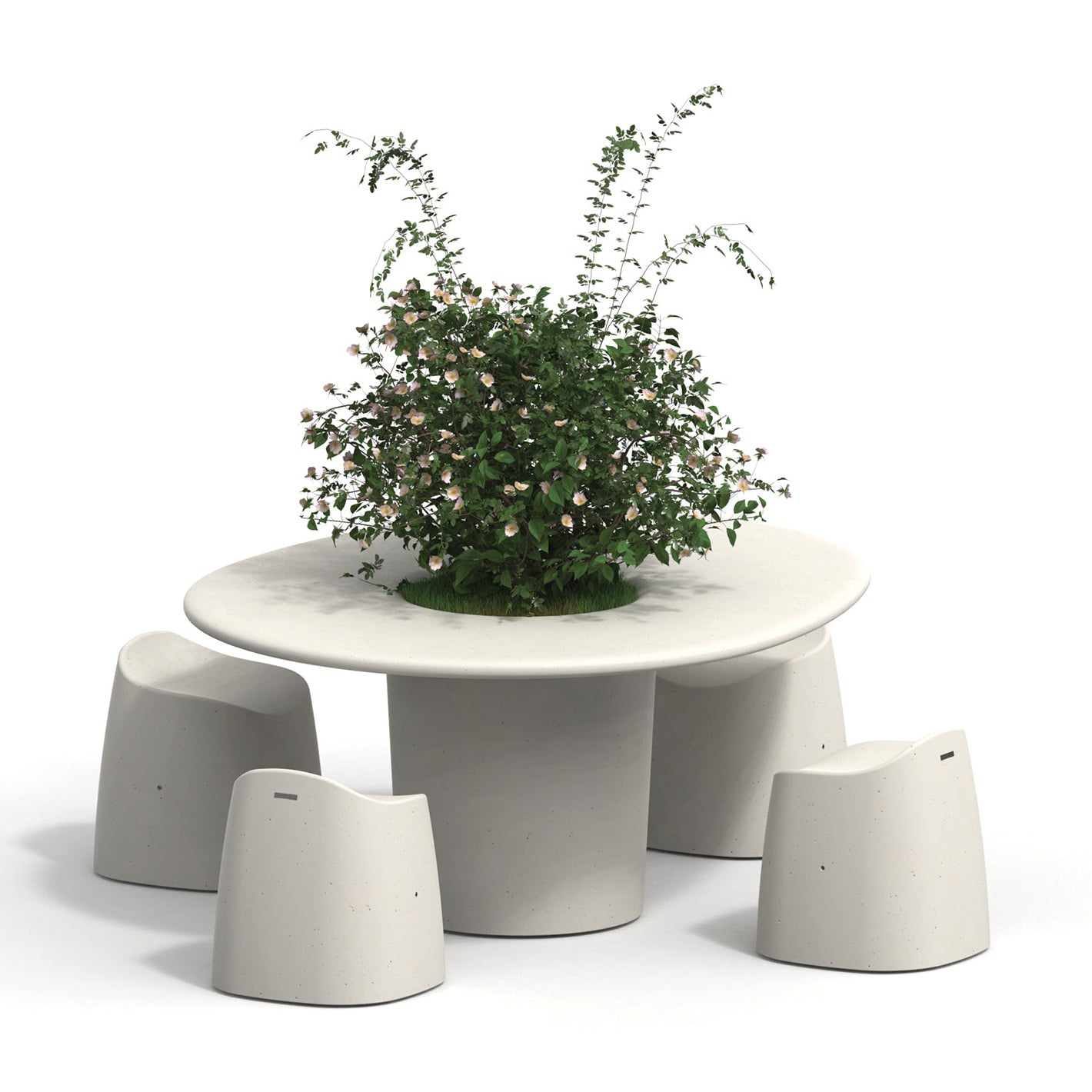 Smoot ist eine Sitzgruppe mit Einzelsitzen und integrierten Pflanzkübeln, die einen Hauch Natur in urbane Räume bringt. Die Tische sind in zwei Höhen erhältlich und werden wie die Sitzhocker aus HPC, High Performance Concrete, Hochleistungsbeton für dünnwandige Bauteile mit feinen, matten Oberflächen, lieferbar in den Farben - weiß, grau, dunkelgrau, grün und gelb, gefertigt. Die zugehörigen Pflanzkübel werden in pulverbeschichtetem Stahl ausgeführt.