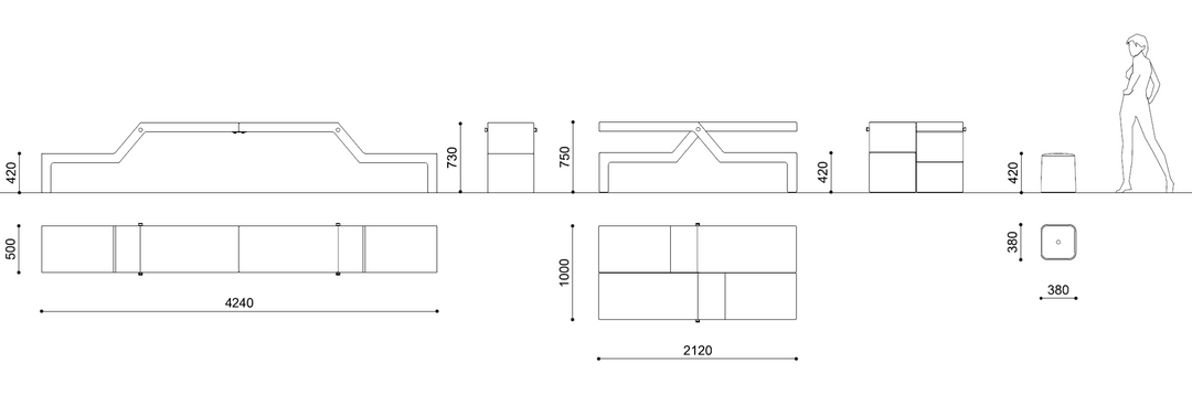 Twin ist eine Parkbank aus HPC (High Performance Concrete: Hochleistungsbeton für dünnwandige Bauteile mit feinen, matten Oberflächen, lieferbar in 5 Farben - weiß, grau, dunkelgrau, grün und gelb). Die Sitzbank ist in zwei Ausführungen erhältlich.