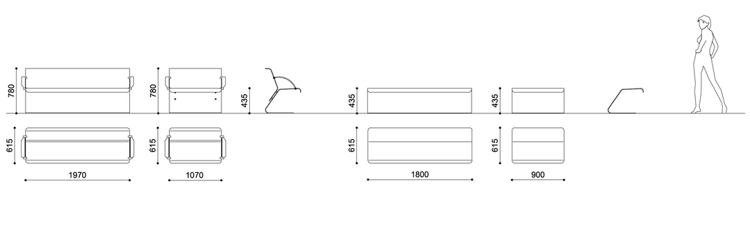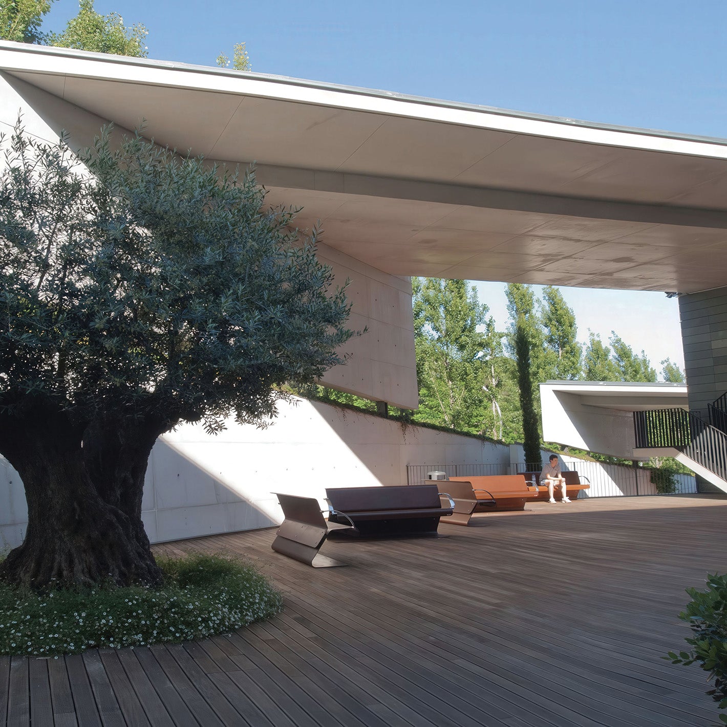 Die Parkbank Volo ist in zwei Längen wahlweise als Hockerbank ohne Rückenlehne oder als Sitzbank mit Rückenlehne und Aluminium Armlehnen erhältlich. Volo wird in pulverbeschichtetem Stahl oder in Corten Stahl ausgeführt.